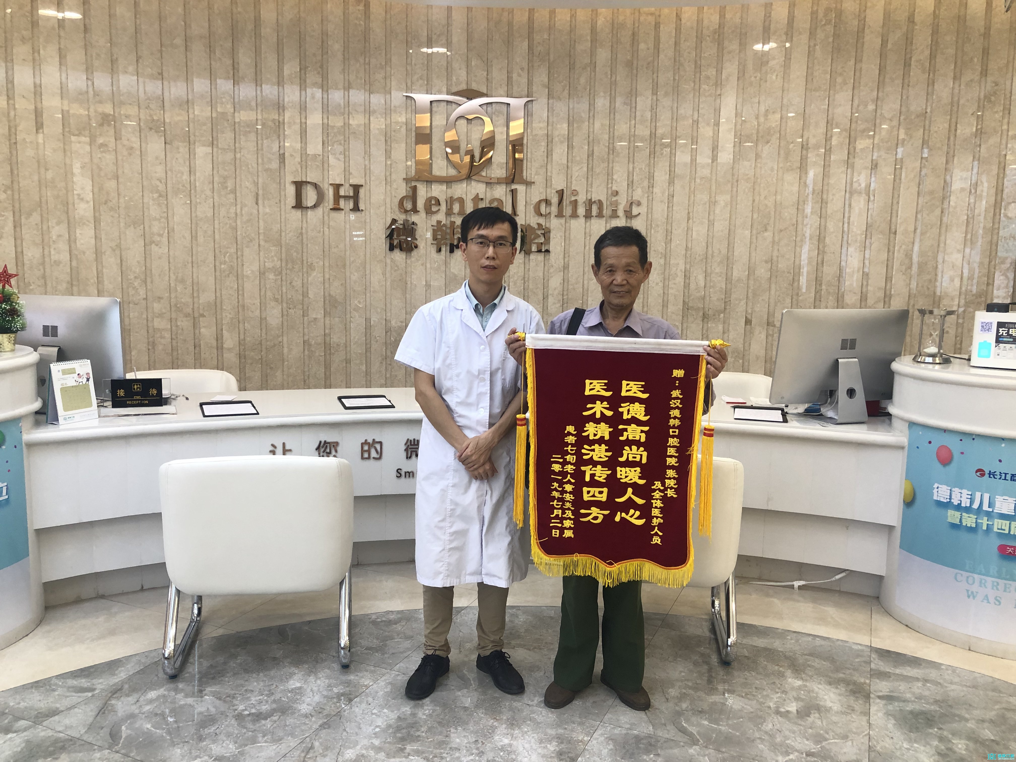 7月2日,武漢德韓摩爾城口腔門診有限公司張?jiān)洪L收到了一面錦旗,紅色綢緞上炫目的金字寫著醫(yī)德高尚暖人心,醫(yī)術(shù)精湛傳四方。 送錦旗的老人年過七旬,身體依然硬朗。帶著···