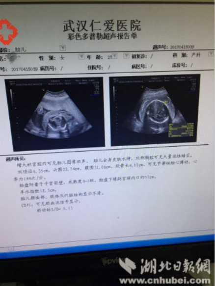 湖北日?qǐng)?bào)網(wǎng)消息(通訊員高牽)2017年4月24日,家住黃陂的27歲準(zhǔn)媽媽蔡麗((化名)因胎兒水腫中止了妊娠,避免了生出異常寶寶。就在幾天前的超聲檢查中,武漢仁愛(ài)···