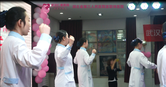 活動開場,在音樂伴奏下護士小姐姐們齊做乳房保健操,將保健操與現(xiàn)場非常受歡迎的舞蹈相結合,配上節(jié)奏感強的音樂,讓參與活動的女性朋友們紛紛活動起來,在寓教于樂中懂得乳房保健的重要性。