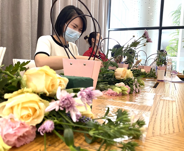 在健康講座環(huán)節(jié),由該醫(yī)院婦產(chǎn)科主任醫(yī)師張純作女性健康專題講座。在藝術(shù)插花環(huán)節(jié),員工們?cè)诨ㄋ噹煹闹笇?dǎo)下,親手實(shí)踐,完成了一件件精美的花藝作品,感受了鮮花在自己手中綻放的浪漫。