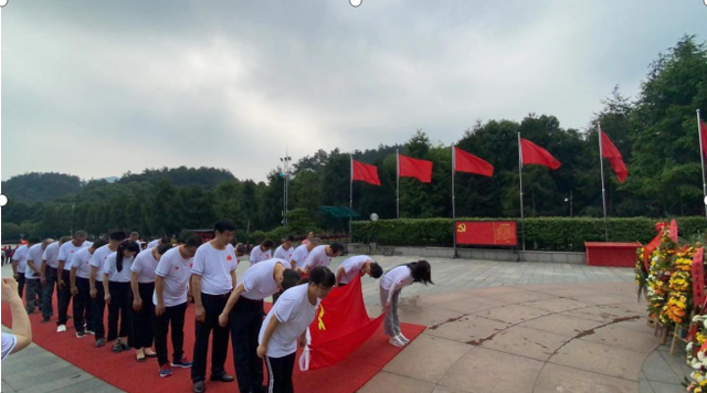 全體黨員面朝毛澤東銅像整齊站立,伴著莊嚴(yán)的《獻(xiàn)花曲》,大家緩緩向毛澤東銅像走去,當(dāng)花籃穩(wěn)穩(wěn)放定在毛澤東銅像下,武漢常發(fā)建設(shè)集團(tuán)黨支部書記邵建國和武漢仁愛醫(yī)院黨支部書記熊怡祥共同上前整理花籃緞帶,并帶領(lǐng)全體人員向毛澤東銅像深深三鞠躬,表達(dá)對毛澤東的敬仰與懷念。隨后,全體黨員面向黨旗,莊嚴(yán)地舉起右手,重溫入黨誓詞。