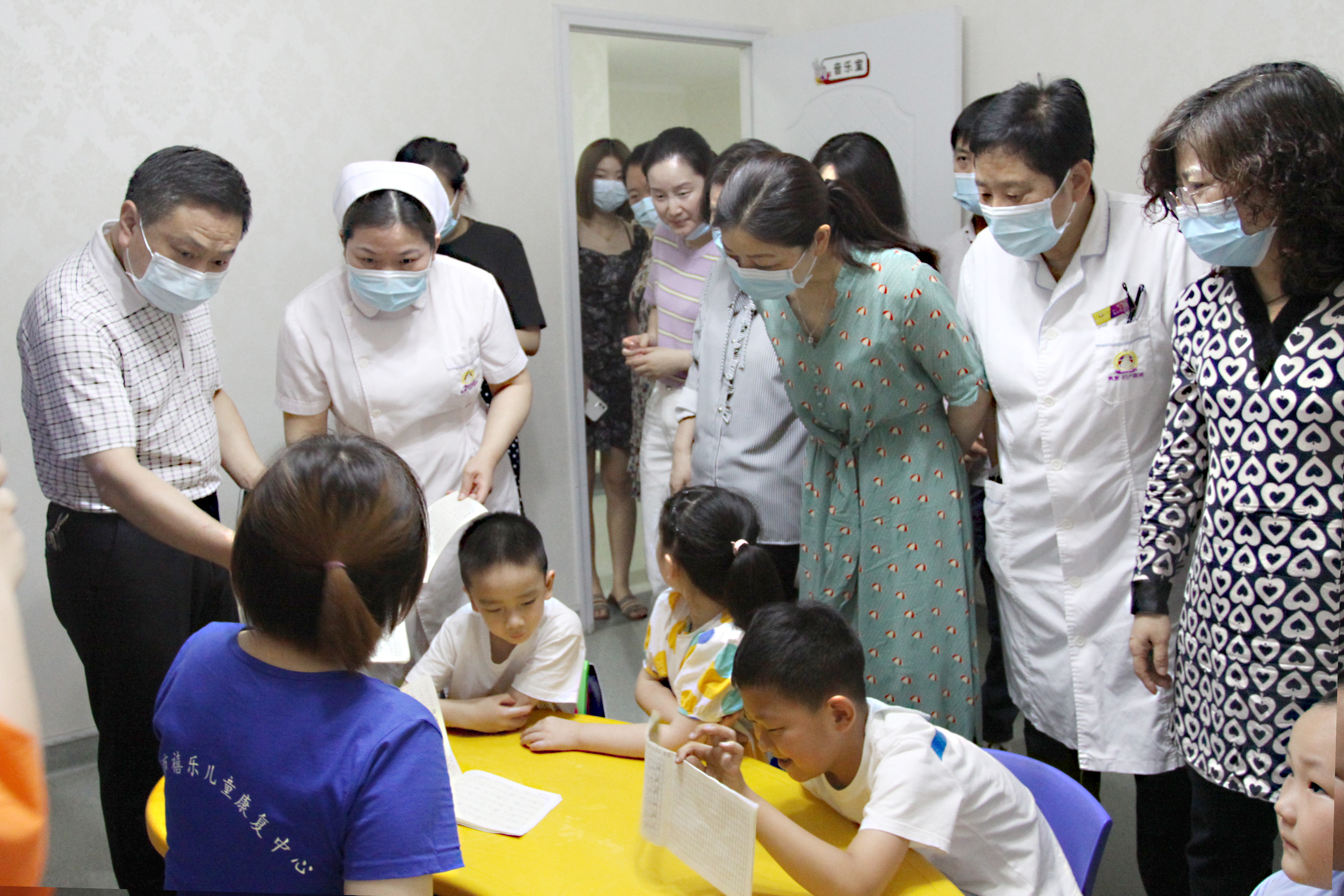 當(dāng)天下午,洪山區(qū)婦聯(lián)、洪山街、鴻嶺花園社區(qū)相關(guān)負責(zé)人,參觀了康復(fù)中心新校區(qū),并與各位家長傾心交談,了解孩子的康復(fù)情況及家庭生活狀況,鼓勵他們樹立信心、克服困難,積極面對生活。同時也要求各位老師和治療師要以愛心耐心責(zé)任心對待每一位患兒,解除患兒病痛,并探索教導(dǎo)特殊兒童的新方法,尋找符合特殊兒童身心成長規(guī)律的新路徑。