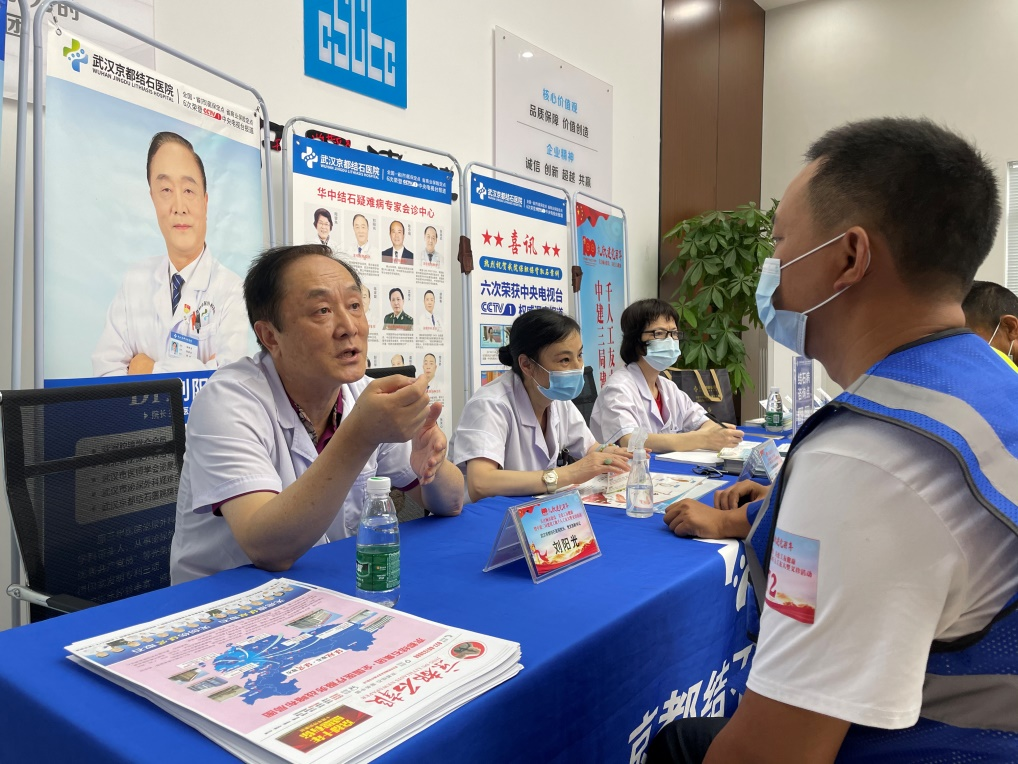 啟動儀式結(jié)束后,武漢京都結(jié)石醫(yī)院為到場的數(shù)百名建筑工人代表進(jìn)行了免費體檢、專家咨詢等服務(wù)項目,獲得廣大工友們的紛紛點贊。