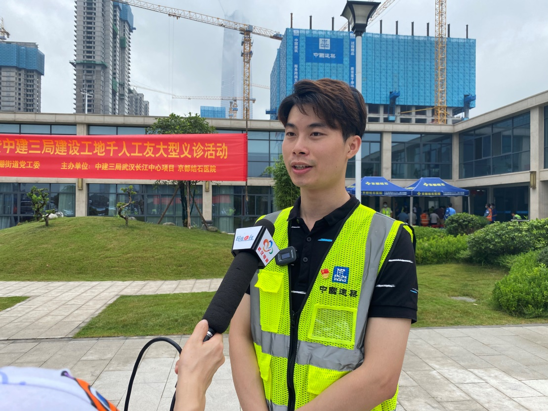 中建三局武漢長江中心項目黨支部副書記黃業(yè)發(fā)接受記者采訪