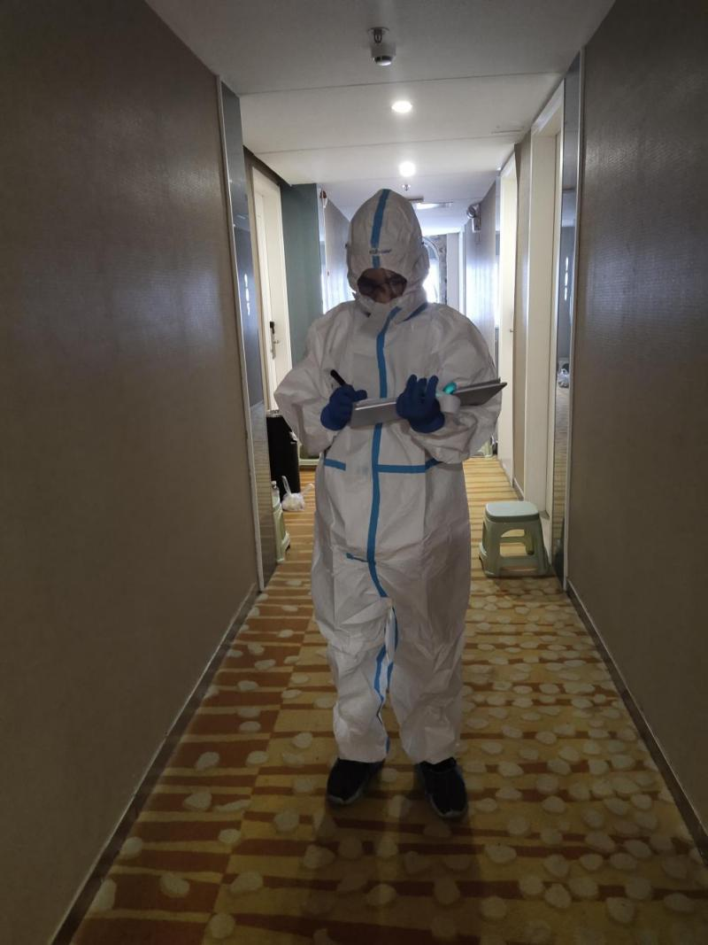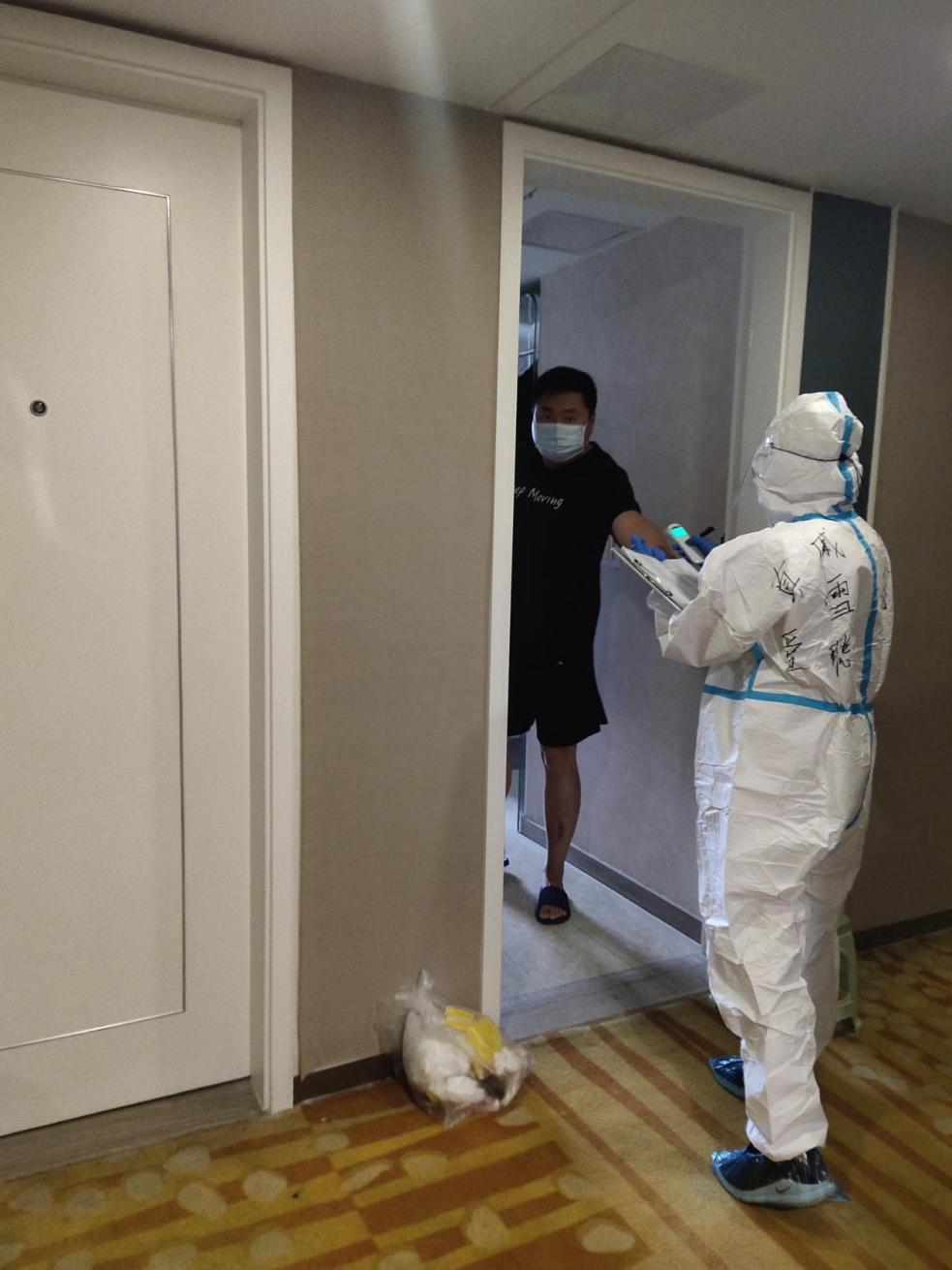 兩位醫(yī)護人員每天要承擔(dān)酒店所有隔離人員的測體溫、信息登記上傳、身體觀察、用藥指導(dǎo)、協(xié)助多次核酸檢測等醫(yī)療護理工作。