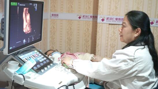 武漢仁愛醫(yī)院超聲影像科王娟主任正在為孕婦做檢查